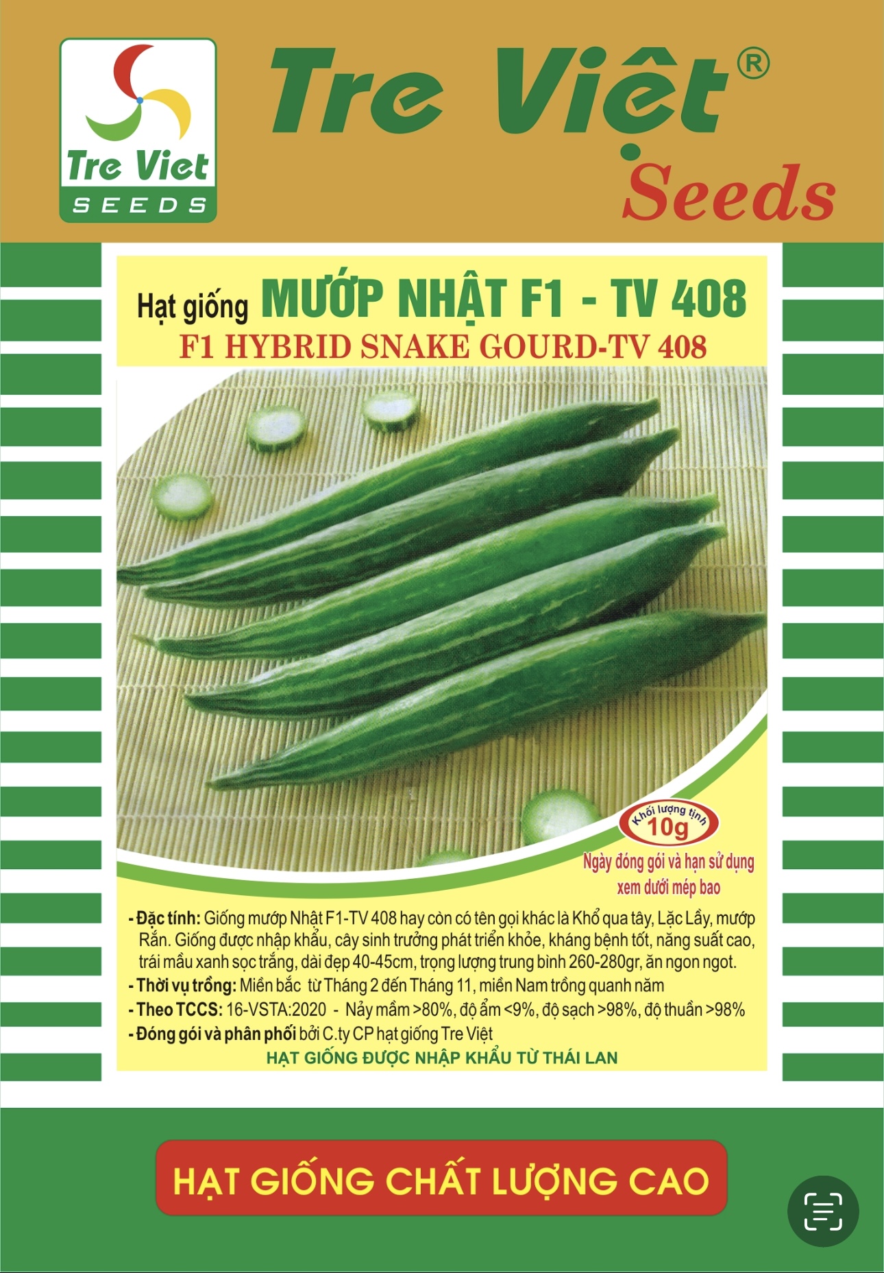 • Đóng gói và phân phối bởi C.ty CP hạt giống Tre Việt