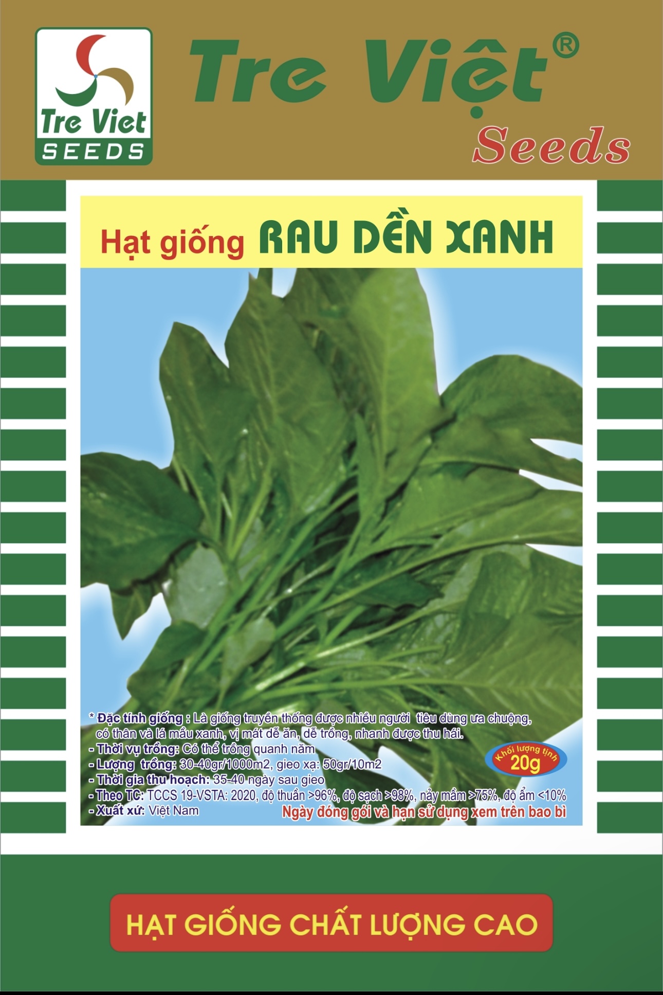 - Theo TC: TCCS 19-VSTA: 2020, độ thuần >96%, độ sạch ≥98%, nảy mầm >75%, độ ẩm ≤10%
